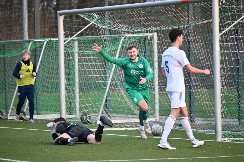Coach Kunze reagierte und brachte mit Bledar Shoshi, Kaba und Mühlmann frische Kräfte. Nun ging noch einmal ein Ruck durch die Grün-Weißen. Besonders über die starke linke Seite mit Devant und Sauane erspielten sich die Zeitzer nun Chance auf Chance. Mühlmanns Schuss konnte der Hüter der Bennstedter noch mit Mühe entschärfen, aber nach starker Vorarbeit von Djabi Sauane war es Leon Devant vorbehalten die Zeitzer wieder ins Spiel zu bringen. Sein herrlicher Schlenzer war unhaltbar. In der 82. Minute rollte der nächste Angriff über links aufs Gehäuse der Gäste. Der Ball kam zu Nobre und der wurde regelwidrig in der Box gestört. Den fälligen Elfer versenkte Lucas Pellmann souverän.
