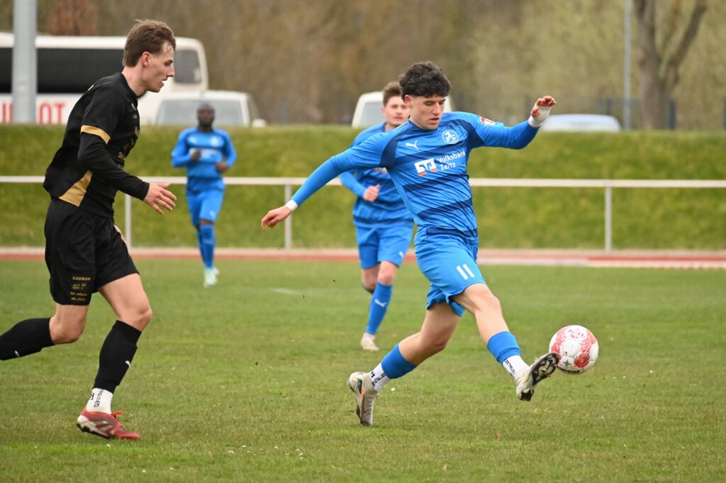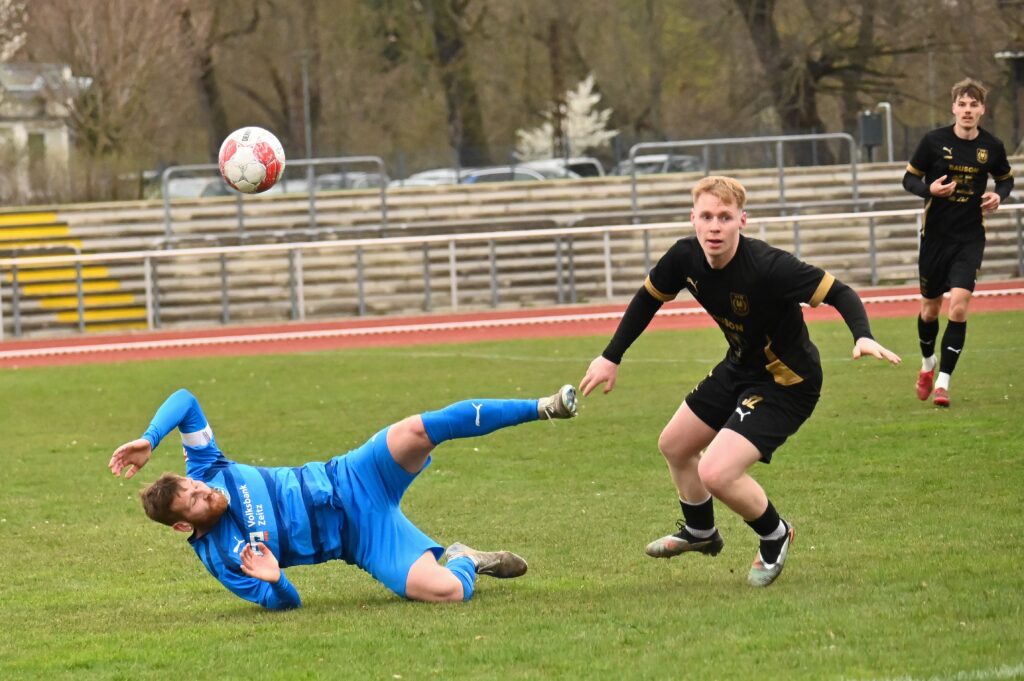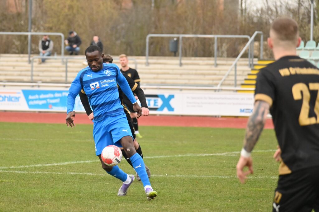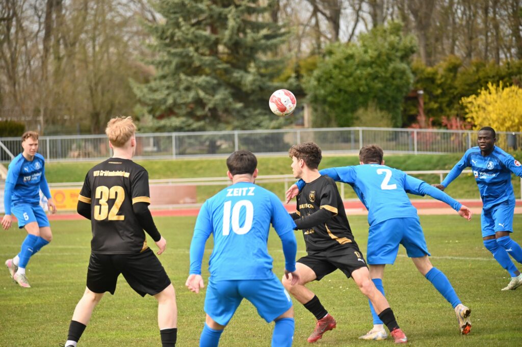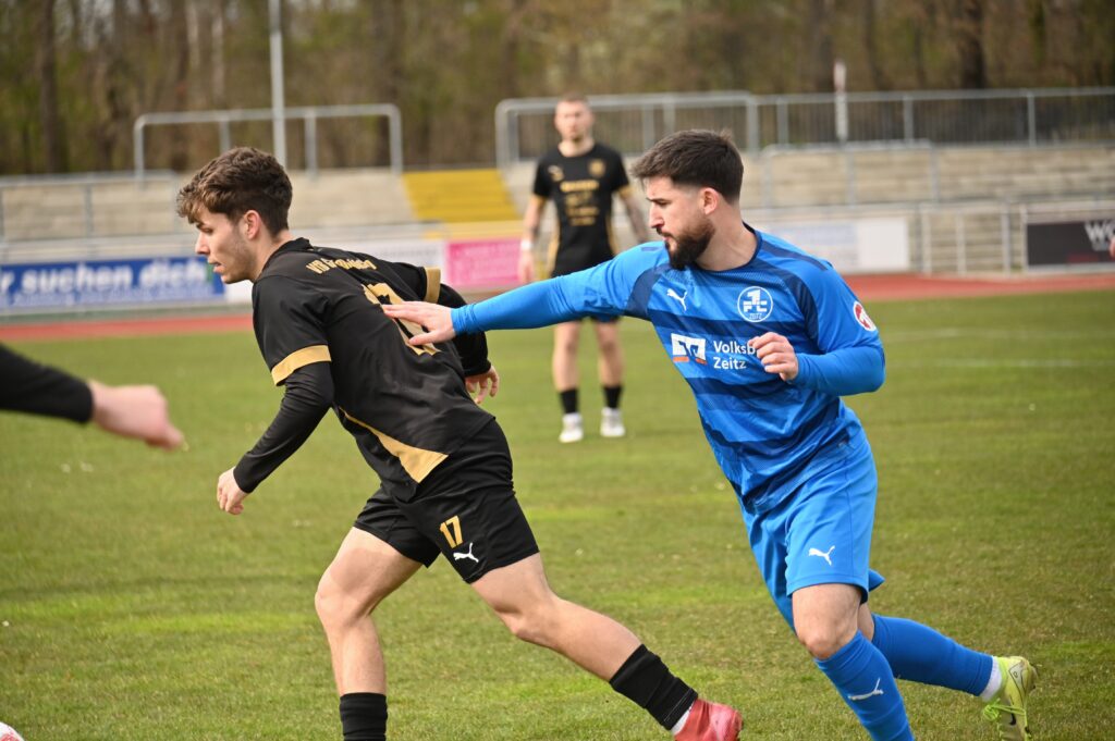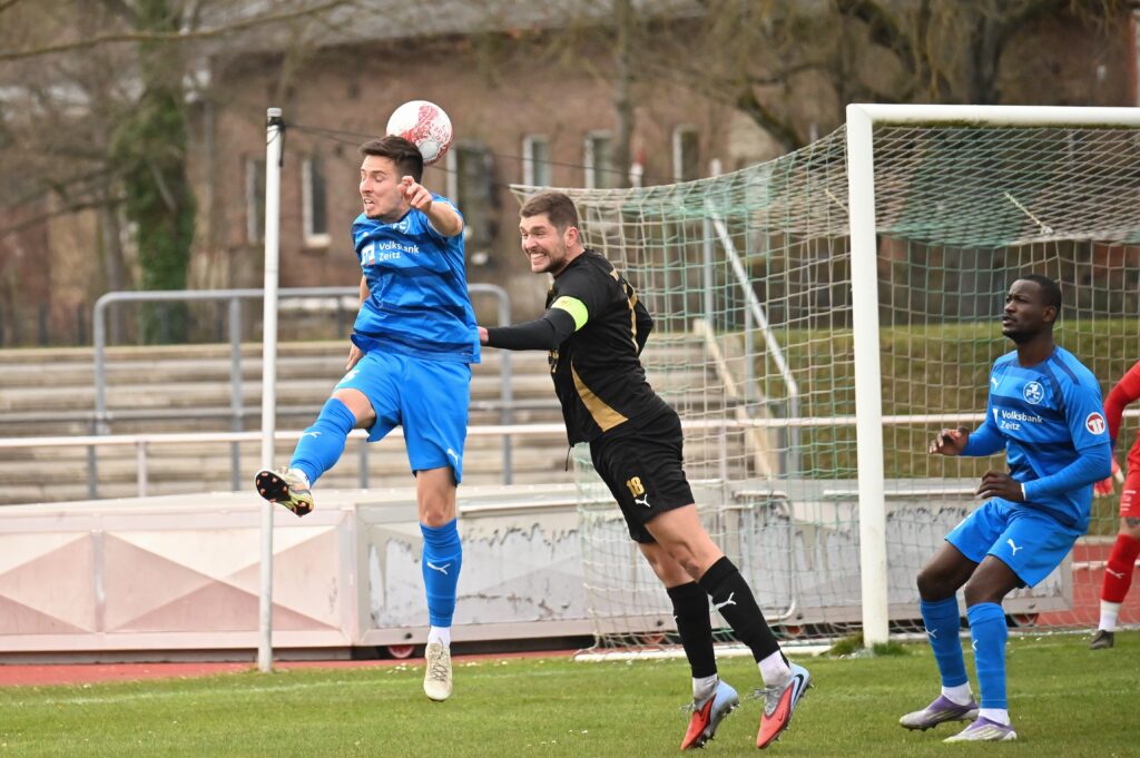 Auch in der zweiten Hälfte wurde es nicht besser. Viel Kampf und Krampf. In der 57. Spielminute allerdings gelang den Gästen die Führung, aus dem sogenannten Nichts. Eric Krogmann, der bis dahin nur durch seine Tatoos auffiel, nutzte ein Missverständnis der Zeitzer Abwehr, umkurvte Seefeld, und schob zur Führung ein. Nun waren die Einheimischen gefordert. Die Grün-Weißen versuchten den Rückstand zu egalisieren. Nach einer Ecke für die Gastgeber verspielte Sauane den Ball, quasi als letzter Mann. Der gut gespielte Konter führte zum 0:2 durch Till Stockmann. In der Folge versuchten die Einheimischen das Ergebnis günstiger zu gestalten, aber viel gelang nicht. Etwas Spannung kam auf als der Hüter der Gäste nach einem langen Ball völlig übermotiviert Lukas Pellmann umrannte. Da dies im Strafraum passierte gab es folgerichtig den Elfer. Leon Devant versenkte unhaltbar. Mehr Zählbares gelang nicht und so blieb es beim enttäuschenden 1:2.