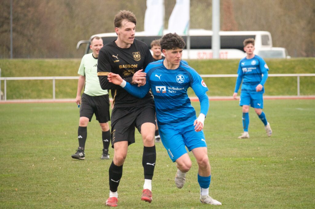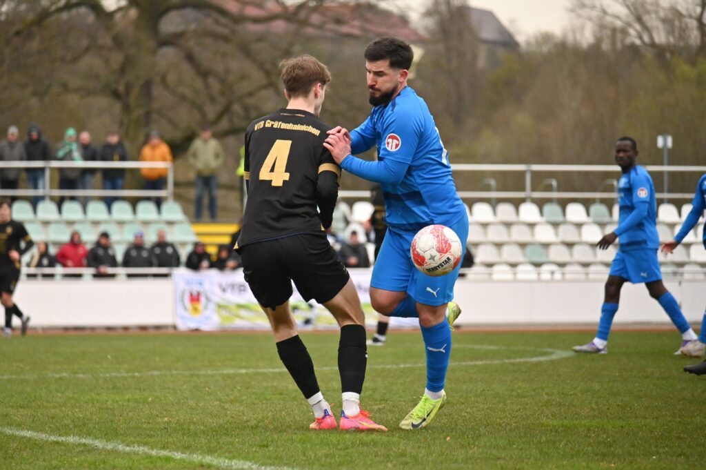 Die Gegenwart heißt Landesliga-Süd, Chemie heißt jetzt 1.FC, Aktivist mittlerweile VfB. Im Nachholer gingen die Gäste vom VfB als Sieger vom Platz und ließen sich von ihrem Anhang feiern. Eine ganze Reihe von Gräfenhainichern befand sich unter den 110 Zuschauern. Ärgerlich sicherlich die Heimniederlage, weil sich auch die Gäste nicht gerade als Übermannschaft präsentierten. Zunächst tasteten sich beide Teams ab, viel passierte in Halbzeit eins nicht. Leon Seefeld parierte in der 21. und 31. Minute zweimal gut und auf der anderen Seite hatten Lukas Pellmann und Leon Devant Möglichkeiten. Zwingend war es aber auf beiden Seiten nicht. Und so ging es ohne Tore, bei kalten Temperaturen, zum wärmenden Pausentee.