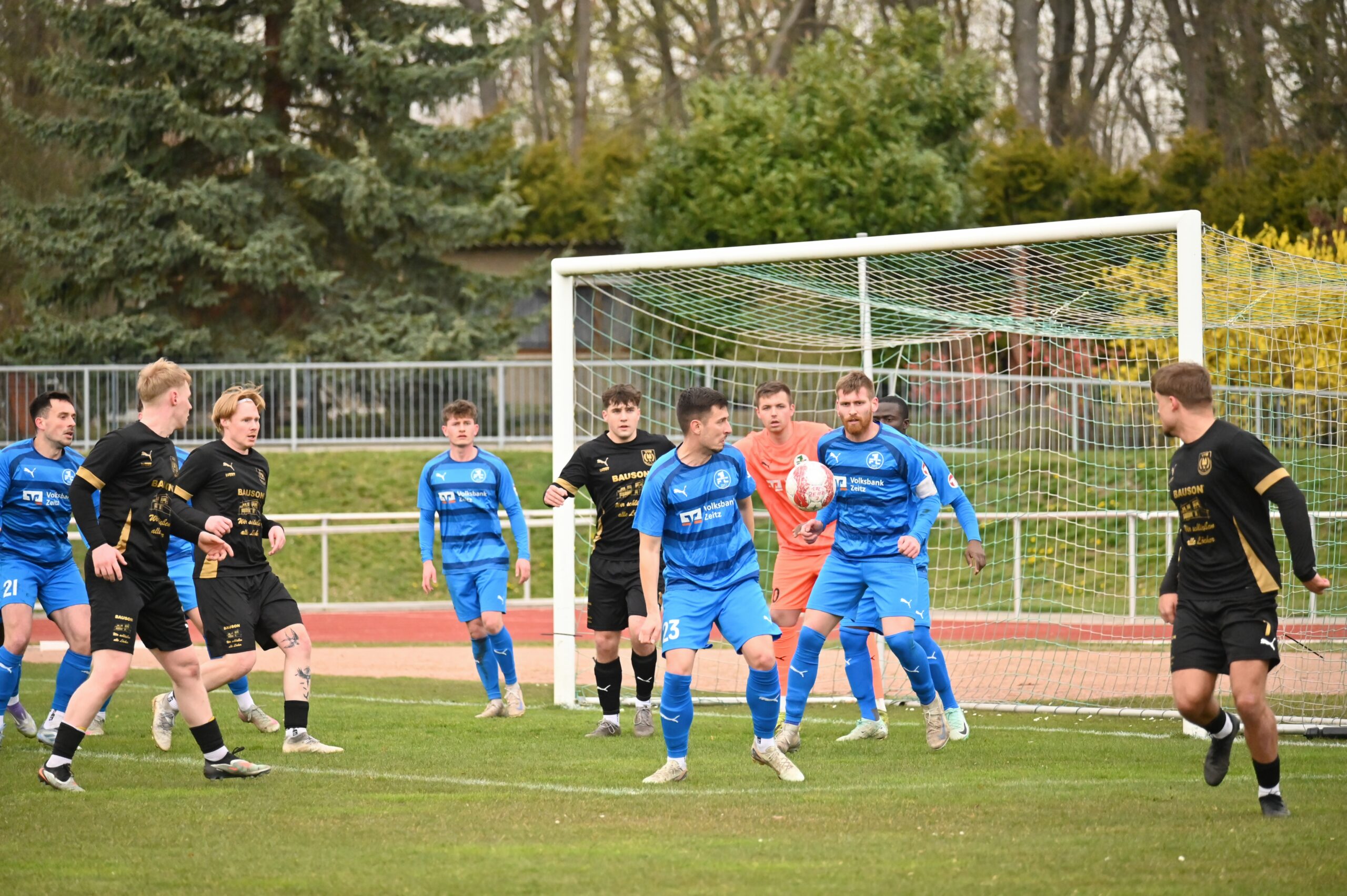 Auch in der zweiten Hälfte wurde es nicht besser. Viel Kampf und Krampf. In der 57. Spielminute allerdings gelang den Gästen die Führung, aus dem sogenannten Nichts. Eric Krogmann, der bis dahin nur durch seine Tatoos auffiel, nutzte ein Missverständnis der Zeitzer Abwehr, umkurvte Seefeld, und schob zur Führung ein. Nun waren die Einheimischen gefordert. Die Grün-Weißen versuchten den Rückstand zu egalisieren. Nach einer Ecke für die Gastgeber verspielte Sauane den Ball, quasi als letzter Mann. Der gut gespielte Konter führte zum 0:2 durch Till Stockmann. In der Folge versuchten die Einheimischen das Ergebnis günstiger zu gestalten, aber viel gelang nicht. Etwas Spannung kam auf als der Hüter der Gäste nach einem langen Ball völlig übermotiviert Lukas Pellmann umrannte. Da dies im Strafraum passierte gab es folgerichtig den Elfer. Leon Devant versenkte unhaltbar. Mehr Zählbares gelang nicht und so blieb es beim enttäuschenden 1:2.