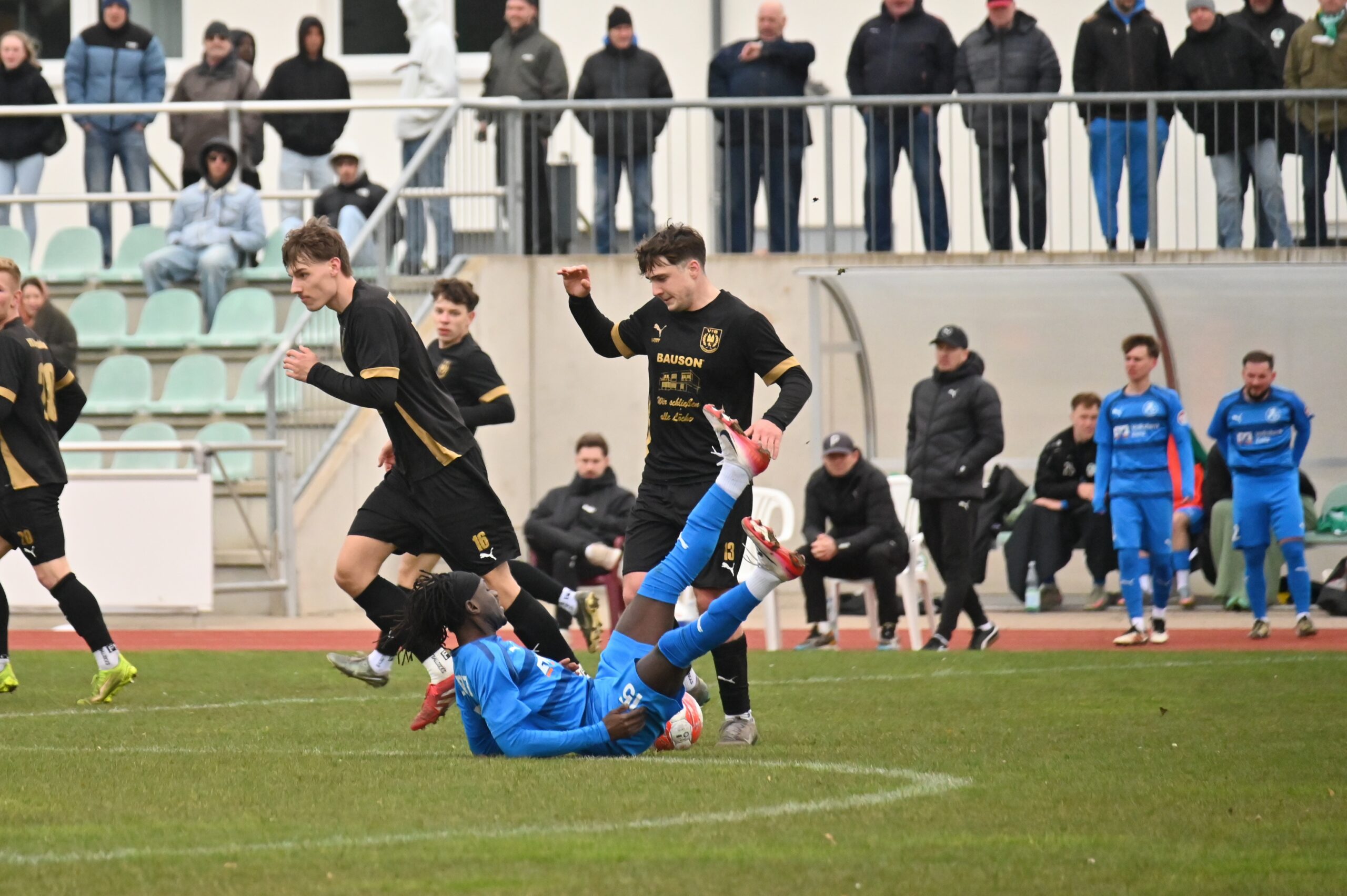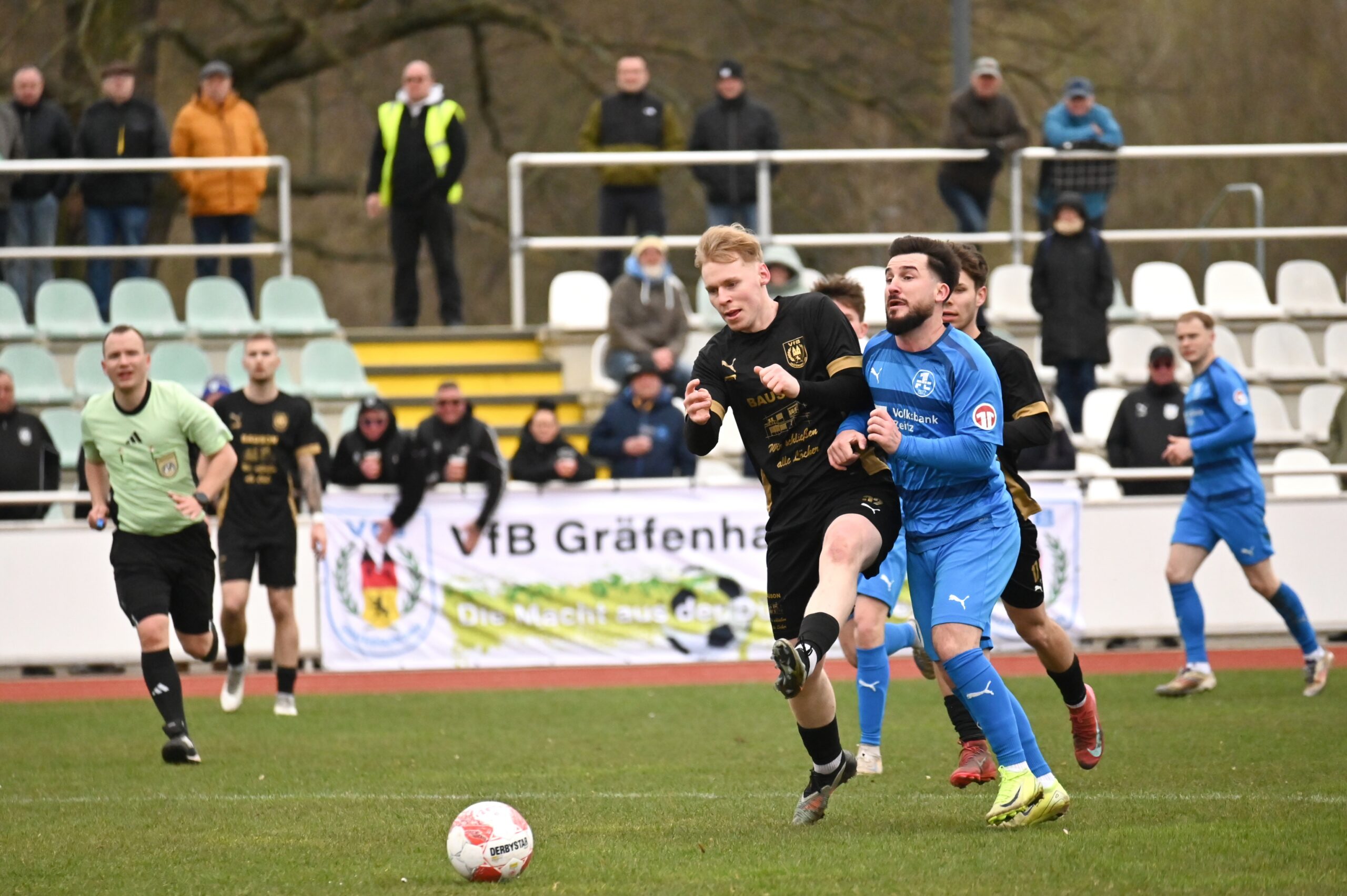 Die Gegenwart heißt Landesliga-Süd, Chemie heißt jetzt 1.FC, Aktivist mittlerweile VfB. Im Nachholer gingen die Gäste vom VfB als Sieger vom Platz und ließen sich von ihrem Anhang feiern. Eine ganze Reihe von Gräfenhainichern befand sich unter den 110 Zuschauern. Ärgerlich sicherlich die Heimniederlage, weil sich auch die Gäste nicht gerade als Übermannschaft präsentierten. Zunächst tasteten sich beide Teams ab, viel passierte in Halbzeit eins nicht. Leon Seefeld parierte in der 21. und 31. Minute zweimal gut und auf der anderen Seite hatten Lukas Pellmann und Leon Devant Möglichkeiten. Zwingend war es aber auf beiden Seiten nicht. Und so ging es ohne Tore, bei kalten Temperaturen, zum wärmenden Pausentee.